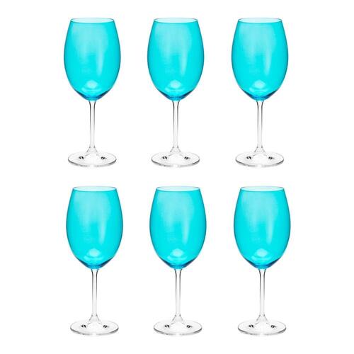 Cj 6 Taças de Cristal Para Água/Vinho Colibri Turquesa 580ml Bohemia