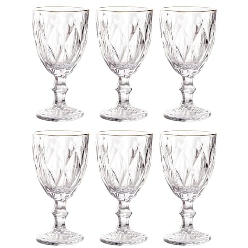 Conjunto 6 Taças para Água de Vidro com Fio de Ouro Diamond 325 ml - Lyor