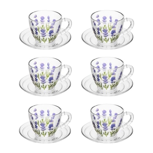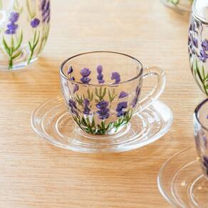 O Conjunto de 6 Xícaras de Café com Pires da Lyor Lavanda Hand Painting 80ml é um jogo de peças em cristal transparente, decoradas manualmente com delicados motivos florais de lavanda, ideal para servir cafés curtos com elegância, combinando o requinte do cristal com o charme artesanal para momentos especiais e sofisticação à mesa.