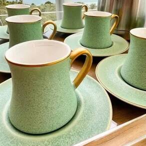 Se requinte e sofisticação é o que você procura na hora do café, o conjunto Galet é ideal. Seus detalhes em dourado deixarão tudo ainda mais elegante, e protagonizarão a decoração de sua mesa. Encante-se com a delicadeza e qualidade desta linha e receba seus convidados e familiares!