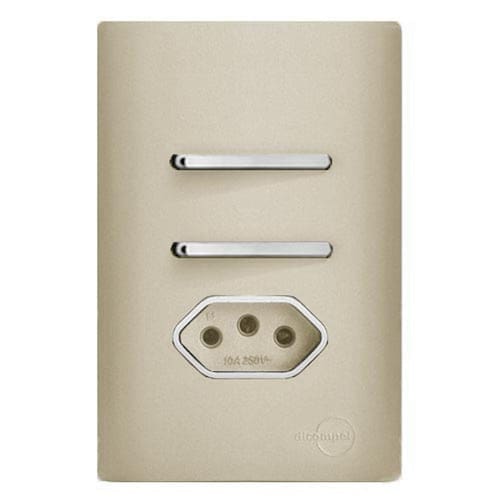 1. PLACA P/ 2 INTERRUPTORES + TOMADA COM SUPORTE 4X2 - DICOMPEL NOVARA CHAMPANHE - DNV1500/79CH