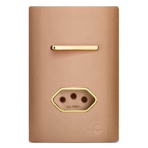 1. PLACA P/ 1 INTERRUPTOR + TOMADA COM SUPORTE 4X2 - DICOMPEL NOVARA OURO ROSE - DNV1500/78OR