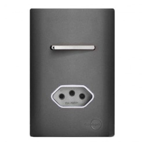 1. PLACA P/ 1 INTERRUPTOR + TOMADA COM SUPORTE 4X2 - DICOMPEL NOVARA PRETO GRAFITE - DNV1600/78PG