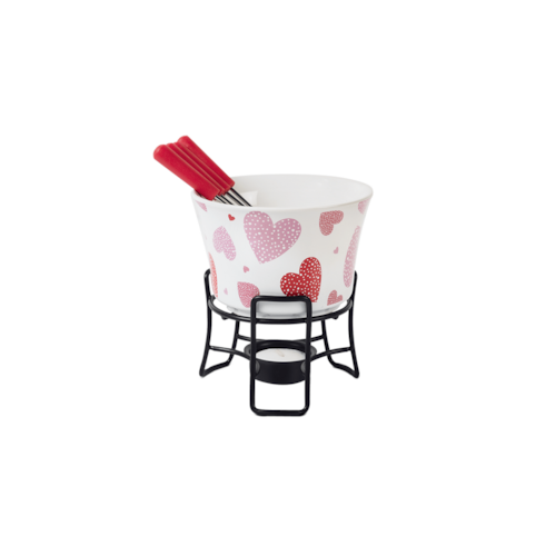 DIFERENCIAIS: composto por uma base de ferro com suporte para vela, um bowl de cerâmica com capacidade para 425 ml, 4 garfinhos em aço inoxidável com cabo em polipropileno na cor Vermelho e uma vela. O Conjunto Fondue 7 peças Corações da Brinox é ideal para momentos aconchegantes e acolhedores. A estampa com corações cria um ar romântico. A base garante estabilidade ao bowl de cerâmica, que deixa a peça mais charmosa, além de manter por mais tempo a temperatura dos alimentos. CERÂMICA: o Conjunto de Fondue 7 peças Corações da Brinox é fabricado em cerâmica que é um tipo de material com bastante eficiência energética, isto é, se mantém aquecido por mais tempo. Além disso, a cerâmica e o formato de mini caldeira do bowl fazem com que o calor se distribua de maneira mais uniforme, o que evita aquecer demasiadamente o fundo e com isso não queima os alimentos. Este modelo é o mais recomendado para fondues de chocolate e de queijos. MATERIAIS: a fabricação do Conjunto para Fondue 7 peças Corações da Brinox segue os mais rigorosos padrões de produção. A base em ferro garante estabilidade durante sua utilização e o suporte para vela permite que o aquecimento do bowl ocorra com uma temperatura adequada para aquecer os molhos sem queimá-los. Com o bowl em cerâmica você tem a garantia de que seus alimentos se manterão aquecidos por mais tempo e os garfinhos em aço inoxidável completam seu aparelho de fondue. INSTRUÇÕES DE USO E RECOMENDAÇÕES: antes de usar pela primeira vez seu Conjunto para Fondue 7 peças Corações da Brinox é importante higienizar todos os itens. Lave cada um deles com esponja macia e detergente ou sabão neutro. Enxágue até retirar todos os resíduos e seque. Para evitar ferrugem, a base de ferro deve sempre passar por um processo de limpeza com esponja ou pano úmido e sabão e em seguida é preciso secá-la completamente. Lembre-se de remover a cera da vela do suporte após cada uso. ESPECIFICAÇÕES TÉCNICAS: o Conjunto para Fondue 7 Peças Corações da Brinox é composto por um bowl de cerâmica com dimensões de 12 cm de diâmetro por 8 cm de altura, com capacidade para 425 ml na cor Branco e estampa de corações, uma base de ferro com suporte para vela de 11 cm de diâmetro 8 cm de altura, quatro garfinhos em aço inoxidável com cabo em polipropileno na cor vermelho e uma vela. RESUMO: • Conjunto para Fondue 7 Peças Corações da Brinox • 1 bowl de cerâmica com dimensões de 12 cm de diâmetro por 8 cm de altura, com capacidade para 425 ml na cor Branco e estampa de corações • 1 base de ferro com suporte para vela de 11 cm de diâmetro 8 cm de altura • 4 garfinhos em aço inoxidável com cabo em polipropileno na cor vermelho • 1 vela INFORMAÇÕES ADICIONAIS: o Conjunto para Fondue 7 peças Corações da Brinox é um kit completo na hora de servir fondue seja num jantar romântico ou recebendo seus amigos em casa. A Brinox oferece um grande conjunto de utilidades domésticas para o seu dia a dia e para ocasiões especiais. Tudo produzido com os mais rigorosos padrões de qualidade técnica e sustentabilidade ambiental. Acesse o site e conheça nossa linha completa de produtos.DESCRIÇÃO O Conjunto para Fondue 7 peças Corações da Brinox é uma ótima opção que traz praticidade na hora de servir um delicioso fondue. Além disso, o aparelho de fondue agrega à mesa ainda mais charme e elegância. Para quem prefere ter à mão um item versátil em casa, esta peça também pode ser usada para servir petiscos ou entradas antes das refeições. Seja para um jantar romântico ou encontro mais intimista com os amigos, o Conjunto de Fondue na cor Branco com estampa em corações vermelhos é uma excelente opção para servir de forma elegante. E, para quem pensa que fondue é só para o inverno, saiba que ele pode ser servido em qualquer época do ano. Já pensou em servir um fondue de chocolate como sobremesa num jantar romântico? Pode ser uma excelente ideia. Deixando a sua casa ainda mais aconchegante, este Conjunto para Fondue 7 peças Brinox é composto por 1 bowl de cerâmica com dimensões de 12 cm de diâmetro por 8 cm de altura, com capacidade para 425 ml na cor Branco e estampa de corações; 1 base de ferro com suporte para vela de 11 cm de diâmetro por 8 cm de altura; 4 garfinhos em aço inoxidável com cabo em polipropileno na cor vermelho; e 1 vela. O bowl em cerâmica é o modelo mais adequado para manter o fondue aquecido de maneira uniforme, por isso, é ideal para os fondues de queijos e chocolates. A Brinox oferece um grande conjunto de utilidades domésticas para o seu dia a dia e para ocasiões especiais. Tudo produzido com os mais rigorosos padrões de qualidade técnica e sustentabilidade ambiental. Acesse o site e conheça nossa linha completa de produtos.