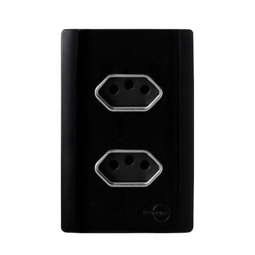 Cj Tomada Dupla 20A 4X2 - Novara Preto Brilhante Cromado