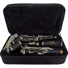 Clarinete Harmonics Hcl-520 Bb 17 Chaves O Clarinete Harmonics HCL-520 BB é afinado em Bb (Si bemol) e é ideal para quem está iniciando os estudos em instrumentos de sopro. Tem o corpo feito em Bakelite e as molas são inoxidáveis, tornando-o muito mais fácil de manusear. O apoio de polegar é emborrachado, oferecendo muito conforto para quem toca. Perfeita entonação e resposta precisa, ajudam a quem está começando os estudos a ter um som preciso, tornando o aprendizado um processo gratificante e progressivo.