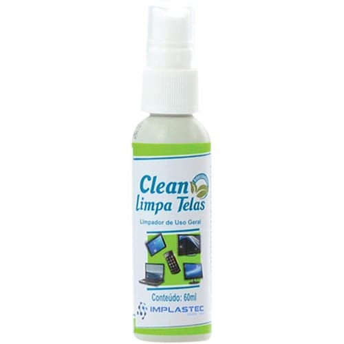Clean limpa telas 60ml com flanela Especialmente desenvolvido para a remoção de manchas, marcas de dedos gordura e poeira de monitores de lcd e plasma, eliminando a estática do monitor, o que reduz o acúmulo de pó na tela; É a base de éteres glicólicos e água, possibilitando a limpeza sem agressão ao monitor. Principais aplicações: Deve ser utilizado para limpeza de notebook, tv de plasma e lcd, mp3, cd, monitores de pc, entre outras aplicações.