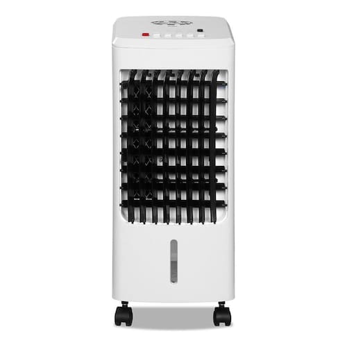 Com design robusto e moderno, o climatizador e construido em metal e plastico de alta resistencia. Ele possui um reservatorio de 3,2 litros, que garante ate 8 horas de autonomia, alem de um pratico reservatorio de gelo. Seu tamanho compacto, com 57cm de altura, 23cm de largura e 26cm de comprimento, o torna ideal para ambientes residenciais fechados de ate 5m2.