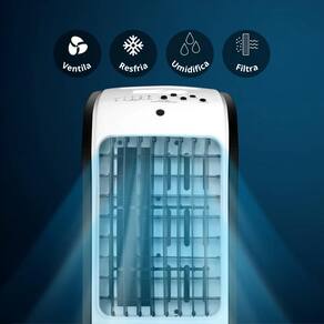 *Refresca Mais: Inclui 2 elementos de refrigeração (bolsas de gel). Congele-os e adicione ao reservatório para um ar visivelmente mais frio.