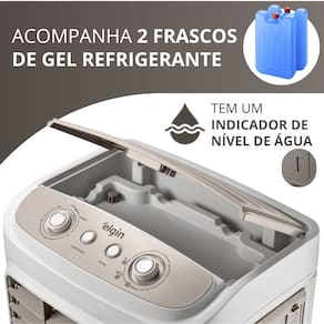 Conteúdo da embalagem: 01 Climatizador 04 Rodas de transporte 02 Gel refrigerante 01 Manual do produto