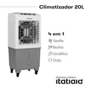 O Climatizador de Ar Itatiaia 20L foi projetado para promover conforto térmico e bem-estar de forma prática e equilibrada. Com funcionamento 4 em 1, ele ventila, resfria, umidifica e realiza oscilação automática, favorecendo a circulação do ar e mantendo o ambiente até 3 C mais fresco.