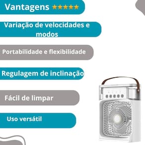 Climatizador de ar portátil premium para resfriamento instantâneo Descrição do anúncio: O climatizador é a solução perfeita para proporcionar um ambiente mais fresco e agradável. Com três opções de vaporização e iluminação decorativa led, ele é ideal para quartos, escritórios e salas.