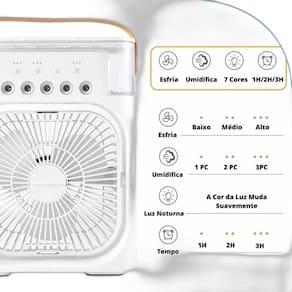 Linha: Ventilador de Mesa Climatizador 10W - Mini Ar Ventilador Iluminação: Com luz É silencioso: Sim