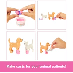 - A boneca e o conjunto de brinquedos Barbie Quick Gypsum Animal Clinic inspiram os amantes de animais de estimação a explorarem seus próprios sonhos como veterinários com uma mesa de exame, um cachorrinho, um gato e mais de 10 peças!