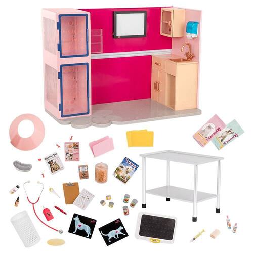Tenha uma clínica veterinária completa para bonecas de 46cm e seus amigos de pelúcia! A Clínica Veterinária Our Generation Healthy Paws é um playset abastecido com acessórios médicos realistas para cuidar de todos os seus amigos animais. Faça check-ups, radiografias e até proporcione uma estadia confortável em canis aconchegantes. Mantenha seus amigos peludos felizes e saudáveis, enquanto suas bonecas cuidam deles com amor e carinho. Uma clínica que fará os rabos abanarem de alegria!