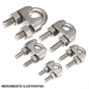 Ferragem em formato de 'U' para embarcações produzida toda em Aço INOX para maior durabilidade contra as adversidades do ambiente marinho. Possui rosca de 5/16 de polegada. Clips prensa cabo em aço inox. A medida do grampo deve ser compatível com o diâmetro do cabo Características: Recomendado para aplicações leves Medida: 5/16 Contém 1 unidade Especificações Técnicas Peso: 0,05 Kg Indicações de Uso em cabos. Itens que Acompanham o Produto: - Clip Marca: Não Informado