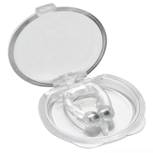 Produto sem contra indicações, feito de silicone cirurgico anti-bactericida. Produto é muito eficaz, porém algumas pessoas podem não ter resultados satisfatórios devido ao grau do problema respiratório pré existente. Antes de qualquer coisa, se você ronca muito deve procurar ajuda médica Tenha hábitos de vida saudaveis, alimentação balanceada e faça alguma atividade física. Quando você dorme a boca e os músculos da garganta relaxam, com a respiração pela boca a língua produzir vibração que se traduz no ronco, muitas vezes insuportável. O clip anti ronco surgiu após várias pesquisas, percebeu-se que colocando o clip com ímãs no nariz, facilita a respiração nasal abrindo a passagem de ar e evitando que o indivíduo respire pela boca e provoque o ronco . Confortável de usar, depois de apenas alguns segundos você vai notar a sua respiração fluir melhor.
