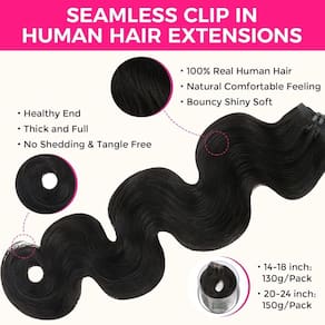 - Trama de poliuretano ultrafina e flexível: nossas extensões de cabelo com clipe sem costura apresentam uma trama de poliuretano flexível que é macia, confortável e suave no seu couro cabeludo. A cola ultrafina torna a trama mais agradável à pele e confortável. A trama e os clipes de poliuretano sem costura também combinam perfeitamente com a cor do cabelo.