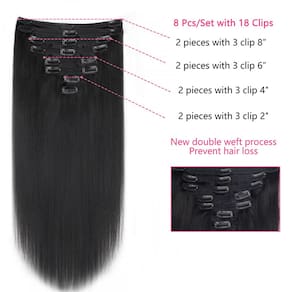 - ? Clipe de cabelo fácil de usar: Em comparação com outras formas de usar, o grampo no cabelo é mais fácil e mais conveniente para deixar você impressionar mesmo que não tenha muito tempo. De acordo com o volume do seu cabelo, geralmente 2 pacotes podem encher sua cabeça, aumentando o comprimento e o volume. Se você gosta de cabelos mais grossos, recomenda-se usar 3 pacotes.