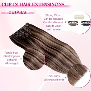 Apresentamos as extensões de cabelo POGINJA Clip in Hair - a solução perfeita para aqueles que buscam extensões de cabelo humano de qualidade premium que sejam fáceis de manter e pentear. Nossas extensões de encaixe são feitas de cabelo humano real de alta qualidade, sem emaranhamento e sem queda, proporcionando uma sensação suave e macia. O design de trama dupla de nossas extensões evita quedas, enquanto os clipes macios cobertos de borracha garantem conforto e protegem o couro cabeludo durante o uso. Fácil de enrolar e misturar perfeitamente com cabelo natural, estes clipes são recomendados para 3-4 meses de uso com cuidados adequados. Escolha entre uma variedade de pacotes para alcançar o volume desejado, disponível em comprimentos que variam de 35 a 61 cm e pesos entre 80 a 120 g, com 8 peças incluídas em cada conjunto. Nossas extensões de cabelo com clipe vêm com uma política de devolução de 30 dias para garantir a satisfação do cliente. Se você estiver procurando extensões de cabelo presas para uso diário ou ocasiões especiais, as extensões de cabelo POGINJA Clip in Hair são a escolha ideal. Sem queda ou emaranhamento, fácil aplicação e remoção e dicas de cuidados fornecidas para longevidade, essas extensões são projetadas para atender às suas necessidades de estilo. Invista em extensões de cabelo humano reais da POGINJA e aproveite os benefícios de um cabelo de alta qualidade que parece e parece natural. A satisfação do cliente é nossa prioridade, e nosso serviço pós-venda está disponível para resolver quaisquer problemas que possam surgir. Melhore sua beleza natural com as extensões de cabelo POGINJA Clip in - a mistura perfeita de estilo, qualidade e conveniência para mulheres que buscam o melhor em extensões de cabelo. Experimente agora e experimente você mesmo a diferença! - ?Material de extensões de cabelo com clipe?: Extensões de cabelo de qualidade de salão, clipe 100% remy premium em cabelo humano, sem emaranhamento, sem queda. O cabelo é macio e macio. Nossas extensões de cabelo podem ser enroladas como você quiser. Pode durar de 3 a 4 meses com bom cuidado. Escolhemos cabelos de alta qualidade, tão bons quanto o seu próprio cabelo. - ?Transformação rápida e fácil?: Transforme seu visual em minutos com extensões de encaixe. Estas extensões são projetadas para facilitar o uso, permitindo que você adicione volume ou comprimento instantaneamente. Perfeito para ocasiões especiais ou uma simples mudança de estilo, estas extensões são o seu segredo para o cabelo de qualidade de salão em casa. - ?Antiqueda, invisível e seguro?: Nossas extensões de cabelo com clipe são usadas de trama dupla, que é mais durável e não cai. Os clipes são cobertos com uma camada de borracha macia para proteger cuidadosamente seu couro cabeludo e cabelo. Oferece um ajuste seguro sem a necessidade de cola ou fita. As extensões são leves e confortáveis, garantindo uma aparência natural que mantém você confiante durante todo o dia. - ?Grampo de cabelo humano em detalhes de extensões?: 100% clipe Remy premium em cabelo humano, 8 peças 80-120 g com 18 clipes por conjunto. O comprimento para extensões de cabelo humano com clipes retos: 35,56-61 cm. De acordo com o volume do seu cabelo, geralmente 1-2 pacotes podem preencher toda a sua cabeça, aumentando o comprimento e o volume. Se você precisa de cabelo grosso, recomendamos comprar mais de 2 pacotes para alcançar um resultado perfeito. - ?Serviço excepcional e satisfação?: 30 dias sem motivo para devolução, se o produto não satisfizer você sobre extensões de cabelo com clipe, por e-mail, faremos o nosso melhor para ajudá-lo a resolver o problema do produto rapidamente! Captura de luz, função da câmera, monitores diferentes e outros fatores afetam, a cor que aparece na sua tela pode ser diferente. Se você não tiver certeza se a cor combina com você, antes de comprar.