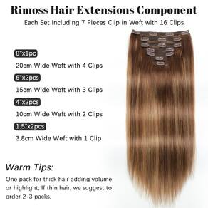 - ?Extensões de cabelo com clipe para cabelo humano real ponta quente?Extensões de cabelo Rimoss com clipe de cabelo humano real com diferentes opções de peso: de 70 g/pacote a 180 g/pacote para sua escolha. Um pacote de extensões de cabelo com grampos para adicionar volume e destaques do cabelo; se cabelos finos, recomendamos pedir dois ou três pacotes.