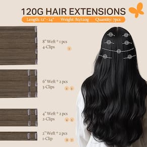 DOORES extensões de cabelo com clipe Objetivo da marca: Design de cabelo moderno e de alta qualidade para mulheres e meninas, deixe-as ter um cabelo bonito e manter um bom humor todos os dias. Descrição do produto: 1. Material do cabelo: 100% cabelo humano real, pode ser lavado, enrolado e tingido como seu próprio cabelo. 2. Extensões de cabelo com clipes: conjunto de 7 peças de 120 g. Peso líquido de 105 g para cabelo sem clipes, 120 g para cabelo com clipes. 3. Conjuntos de cabelo: trama de 2,5 x 20,3 cm de largura, 4 clipes presos, trama de 5 x 15 cm de largura, 3 clipes anexados, trama de 5 x 10 cm de largura, 2 clipes anexados, trama de 5 x 5 cm de largura com 1 clipe. 4. Comprimento: 35,5-56 cm. 5. Adequado para qualquer ocasião: seja no dia a dia ou festa, casamento, Natal, etc., também é um bom presente para suas amigas. 6. Textura: seda reta, pode ser ondulado encaracolado. 7. Tintura de cabelo e cachos: escolha a cor semelhante ao seu cabelo, pode ser tingido para combinar perfeitamente. Ele manterá o cabelo super condição com cuidados capilares adequados. E pode ser enrolado em qualquer lindo penteado que você quiser. Dicas de cuidados com o cabelo quente 1. Cor do cabelo: imagem real do produto. Ao escolher a cor, de acordo com a cor da raiz do cabelo. Faça um penteado balayage ombre, ficará lindo e incrível. Talvez devido a efeitos de iluminação, configurações de brilho/contraste do monitor, etc., pode haver um pouco leve ou escuro. 2. Tingimento de cabelo: Prometa 116% de extensões de cabelo humano real, para que possa ser tratado e estilizado como seu próprio cabelo, não sugerimos tingir a cor colorida ou mais clara, se você também quiser fazer isso, vá ao salão profissional ou antes de fazer isso. Séries do cliente: Se você tiver algum problema, sinta-se à vontade para entrar em contato conosco, ajudaremos você a resolver o mais rápido possível. - Extensões de cabelo humano real de alta qualidade podem ser estilizadas livremente: cabelo humano real, feito de cabelo humano real de qualidade 9A e excelente tecnologia. Absorve continuamente as necessidades dos clientes e, finalmente, alcança extensões de cabelo humano real DOORES de alto nível - Extensões de cabelo macias e confortáveis: DOORES 7 peças de extensões de cabelo com clipe de 120 g, peso líquido de 105 g. O cabelo é super macio, com pontas inteiras e sem rachaduras, fazendo você se entregar a cabelos sedosos. A trama de cabelo feita à mão e com camada dupla torna o cabelo seguro - Clipes de metal em forma de U para reduzir o rasgo e 5 minutos de uso rápido: clipes em forma de U de aço inoxidável garantem um ajuste seguro e confortável, reduzindo o puxão do cabelo. Costas de silicone macio protegem seu couro cabeludo. Use ou remova extensões facilmente em apenas 5 minutos - Muitas cores ombré ou balayage populares para escolher: oferecemos muitas cores populares para uma combinação de cores. A cor é brilhante e combina perfeitamente com o seu cabelo. Calibramos meticulosamente as cores para minimizar quaisquer discrepâncias cromáticas em diferentes telas - Dicas de cuidados: use produtos hidratantes para lavar extensões, evitando a perda de cabelo. Semanalmente, deixe de molho em água morna com condicionador por 20 minutos, seque naturalmente. Com bom cuidado, o cabelo dura de 2 a 3 meses. Siga as instruções incluídas para obter melhores resultados