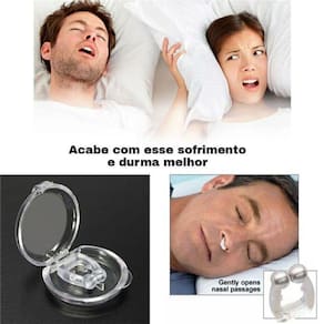 Clip Dilatador Nasal Anti Ronco AÇÃO:O Clipe Nasal auxilia no aumento do fluxo de ar pelo nariz, aliviando ou até eliminando o problema do ronco. Tenha noites de sono mais agradáveis.COMO USAR 1 - Ao receber o seu Clipe Nasal, retire da caixinha transparente e lave com água e sabão neutro; 2 - Após a limpeza, coloque o clipe no nariz cerca de 20 minutos antes de dormir; 3- Após utilização lave e guarde seu clipe na caixa de armazenamento. OBSERVAÇÕES:Feito de material de silicone de qualidade.Muito fácil de usar e fácil de limpar.Vem com uma caixa de viagem para armazenamento seguro e fácil de transportar.Material: plástico não-tóxico & siliconeCor: TransparenteOcasião: casa, dormitório, viagens, presente para amigos ou famílias