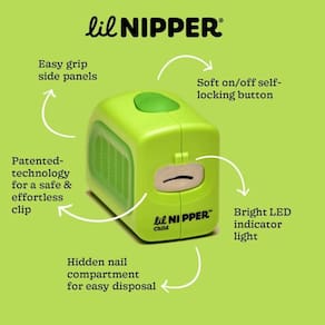 Dê o presente da independência! Não há nada como ver seu filho dominar uma nova tarefa. Projetado para mãos e dedos pequenos para que as crianças possam dominar a tarefa semanal de cortar suas próprias unhas. Engenharia experiente e tecnologia patenteada evitam lesões. Um escudo de segurança ajuda a proteger a pele ao redor e o mecanismo de corte patenteado oferece um clipe contínuo e suave. O botão de travamento automático macio liga/desliga e os painéis laterais de fácil aderência facilitam segurar e controlar, não importa o tamanho ou a força da sua mão. Placa e lâmina de aço inoxidável de grau médico. Não é necessário afiar. Compartimento oculto para unhas com fundo deslizante para armazenamento conveniente e descarte de recortes de unhas. Bateria automática recarregável de alta capacidade, por isso é fácil e duradoura. - Luz LED brilhante – Inclui uma luz frontal LED brilhante voltada para as unhas para que você possa aparar as unhas do seu filho mesmo no escuro! Escudo de segurança e luz LED brilhante ajudam a proteger a pele. - Aparador de unhas de qualidade – lâmina e lâmina de aço inoxidável de grau médico – Corta uma pequena fatia de cada vez. O mecanismo de corte patenteado oferece um acabamento contínuo, sem esforço e seguro. Tudo o que você faz é inserir sua unha através do compartimento de segurança. Atrás há uma lâmina de unha de aço inoxidável de grau médico que irá aparar suas unhas suavemente e precisamente, deixando a unha lisa. - Fácil de segurar e usar: o cortador de unhas elétrico Lil Nipper é do tamanho de um ovo e é moldado para caber confortavelmente em qualquer tamanho de mão. Possui painéis laterais de fácil aderência e botão liga/desliga superior para facilitar o manuseio. - Perfeito para crianças que têm medo de cortar as unhas. Chega de "encaixes" ou "clipes" assustadores ou abruptos. Isso é suave, mas preciso. - Clipe de unhas sem bagunça! Quando terminar de cortar as unhas, abra o compartimento inferior das unhas e descarte os recortes de unha. Chega de unhas arremessando. - Perfeito para idades de 5 a 13 anos - A orientação geral depende do tamanho dos dedos das mãos e dos pés. Ótimo presente de diversão e independência para aqueles pequenos que amam fazer as coisas por si mesmos. Perfeito para pais com vários filhos! - Compra de risco zero – O aparador automático de unhas é construído com ABS de alta qualidade em uma forma ergonômica. O design compacto permite que você carregue para qualquer lugar e use quando quiser. O kit de cuidados com as unhas pode ser dado a pais com crianças pequenas. É apoiado por uma política de devolução sem risco. Sinta-se à vontade para entrar em contato conosco se tiver algum problema com o produto. - ClipDifferent Tecnologia e serviço - Somos uma empresa familiar de Minnesota e nos dedicamos a fornecer produtos e serviços de qualidade superior. Sinta-se à vontade para entrar em contato conosco se nossos cortadores de unhas para crianças e bebês não satisfizerem você por qualquer motivo. - Bateria automática e recarregável de alta capacidade, por isso é realmente sem esforço e durará anos. O dispositivo carrega em apenas 30 minutos e durará meses. Você nunca precisará substituir as baterias - basta conectar para carregar.