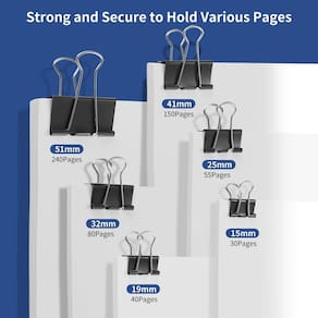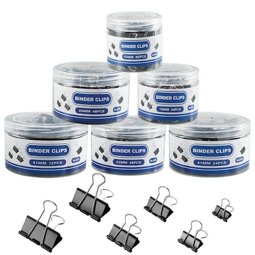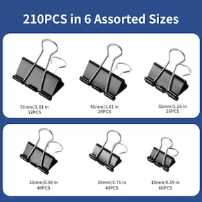 Clipes de encadernação BaingEsk de 210 peças, grampos de papel de tamanhos variados, X grandes, grandes, médios, pequenos, mini e micrometálicos, grampo de papel para encadernação preta a granel, escritório, casa, material escolar