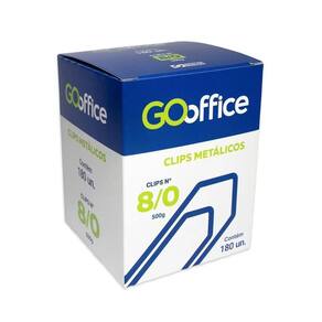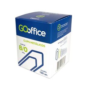 Demais características: - Marca: GoOffice - Modelo: 8/0 - Tamanho: 5,5cm altura - Diâmetro do arame: 1,40mm - Contém: 180 unidades - Linha Leve - Contém: 01 Caixa Clips De Papel 8/0 Com 180 Unidades Marca: Não Informado Ean: 7899381432639