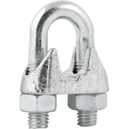 Indicado para prensar/amarrar cabos de aço. A medida dos clips/grampos deve ser compatível com o diâmetro do cabo, recomendado para aplicações leves. Não deve ser usado em aplicações de elevação de cargas.