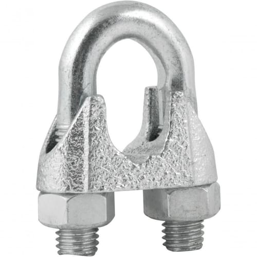 Indicado para prensar/amarrar cabos de aço. A medida dos clips/grampos deve ser compatível com o diâmetro do cabo, recomendado para aplicações leves. Não deve ser usado em aplicações de elevação de cargas.