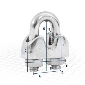 Indicado para prensar/amarrar cabos de aço. A medida dos clips/grampos deve ser compatível com o diâmetro do cabo, recomendado para aplicações leves. Não deve ser usado em aplicações de elevação de cargas.