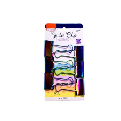 Clips para Papel Binder BRW Rainbow Prendedor Metálico com Efeito Holográfico 25MM Blister com 6 Unidades