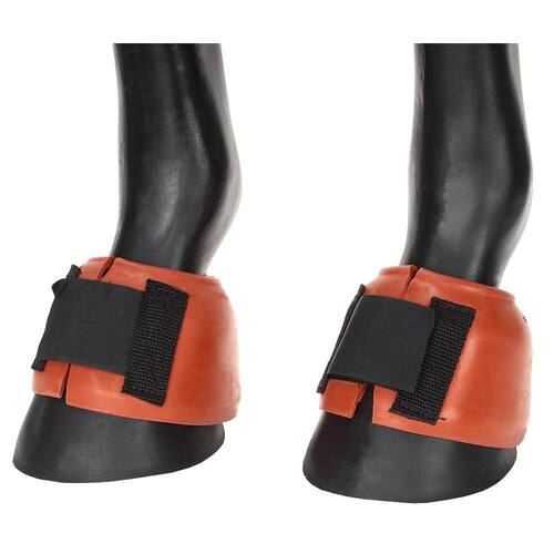 Par de cloches Phoenix importados, fabricados em material emborrachado super resistente e fechamento em tira autocolante duplado, possui bicos internos para evitar que o cloche vire sobre a pata do animal. É indicado para prevenir lesões quando o cavalo alcança as mãos com os pés. Utilizados nas patas dianteiras do animal.
