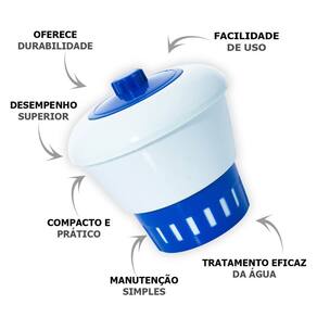 Tecnologia: Conta com um sistema de liberação contínua de cloro, garantindo eficiência no tratamento da água e reduzindo o desperdício de produto químico.