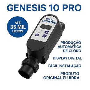 Gerador de Cloro Veico Genesis 10PRO - Piscinas até 35.000 Litros Mantenha sua piscina sempre limpa e segura com o Gerador de Cloro Veico Genesis 10PRO. Utilizando tecnologia de eletrólise salina, este equipamento produz cloro automaticamente, eliminando a necessidade de dosagens manuais. Destaques Compatível com piscinas até 35.000L Wi-fi integrado para controle remoto Autolimpante com reversão de polaridade Painel digital com status em tempo real Fabricado pela Fluidra, referência mundial em tratamento de água O que acompanha: 1 Clorador Veico Genesis 10PRO Kit de instalação Manual técnico de fábrica Especificações Técnicas Tensão: Bivolt 110V/220V Produção de Cloro: 10g/h Instalação: Linha hidráulica de retorno Conexões: 50mm / adaptável Vantagens Menos produtos químicos Ideal para crianças e alérgicos Reduz manutenção e custos com cloro granulado Produto silencioso e ecológico Suporte e Marca: Não Informado