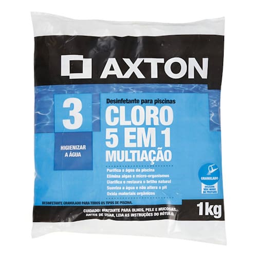 Mantenha sua piscina limpa e segura com nosso cloro granulado de alta eficacia. Ideal para purificar a agua, este produto de 1kg e perfeito para uso diario, garantindo a manutencao ideal de piscinas de qualquer tamanho. Para utiliza-lo, verifique primeiro a alcalinidade total e o pH da agua, mantendo-os nos niveis recomendados. Adicione de 2 a 4 gramas do produto por cada 1.000 litros de agua, dissolvendo-o previamente em um recipiente plastico com agua da piscina antes de aplicar uniformemente. Apos 30 minutos da aplicacao, a piscina estara pronta para uso. E essencial realizar a analise diaria do teor de cloro ativo e manter a filtragem da agua por no minimo 6 horas diarias. Aspire o fundo e escove as paredes semanalmente. Siga as precaucoes de seguranca, utilizando equipamento de protecao adequado e mantendo o produto fora do alcance de criancas e animais domesticos. Conserve o produto em sua embalagem autêntico em um local fresco e seco para garantir sua eficacia. Marca: Axton