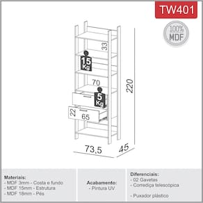 Itens Inclusos: 1 Guarda Roupa (TW401)