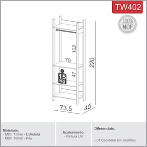 Closet 1 Torre Cabideiro Industrial TW402 Freijó Preto Fosco Dalla Costa - Freijó | Preto