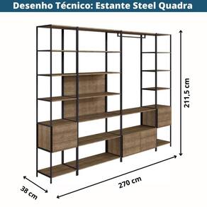 Closet 3 Estantes Industrial Steel Quadra Artesano 270 Cm (largura) Mdp Vermont Estrutura Aço Preto