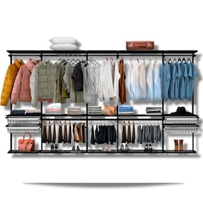 Este produto possui uma configuração casal, contendo cabideiro com dois níveis interrompidos por prateleiras. As gavetas aramadas possuem um fechamento com tampo em mdf. Você poderá brincar com as peças intercambiando entre módulos ou mudando a altura da peças.