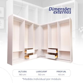 Versatilidade: Pode ser utilizado em quartos de casal, closets ou ambientes planejados.