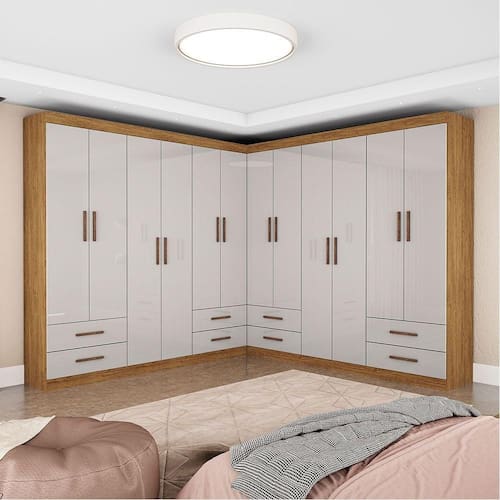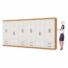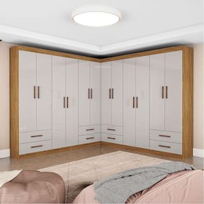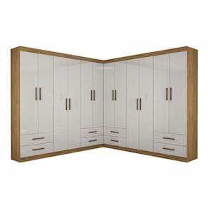 Destaques do produto Closet compacto e funcional 12 portas com excelente divisao interna 8 gavetas com corredicas metalicas 4 prateleiras internas 4 cabideiros em aluminio Maleiro para volumes maiores Estrutura em MDP resistente Montagem versatil: linear, em L ou separada