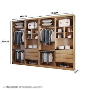 Dimensoes de cada Modulo: Altura: 230 cm Largura: 180 cm Profundidade: 50 cm Peso: 107,5