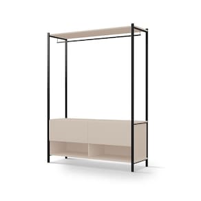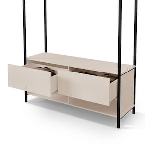 Closet Estilo Industrial Dallas com 2 gavetas e suporte para cabide.