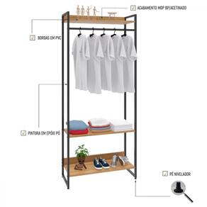 O(a) Closet Fine Plus 3 Prateleiras Lâmina Marrom/Preto - Pnr Móveis é produzido em MDP e Aço na escala de brilho Fosco, e possui um grau de dificuldade de montagem: Médio.
