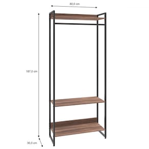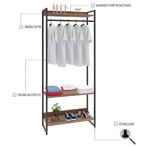 O(a) Closet Fine Plus 3 Prateleiras Nogal/Preto - Pnr Móveis é produzido em MDP e Aço na escala de brilho Fosco, e possui um grau de dificuldade de montagem: Médio.