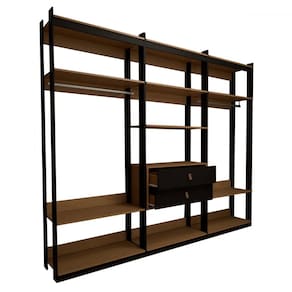 O(a) Closet Industrial Marseille 2 Gavetas 8 Prateleiras 2 Cabideiros Black/Brise - Loja é produzido em MDP na escala de brilho Fosco, e possui um grau de dificuldade de montagem: Médio.