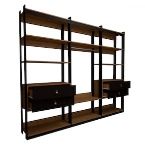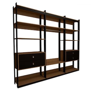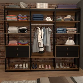 O(a) Closet Industrial Marseille 4 Gavetas 6 Prateleiras 1 Cabideiro Black/Brise - Loja é produzido em MDP na escala de brilho Fosco, e possui um grau de dificuldade de montagem: Médio.